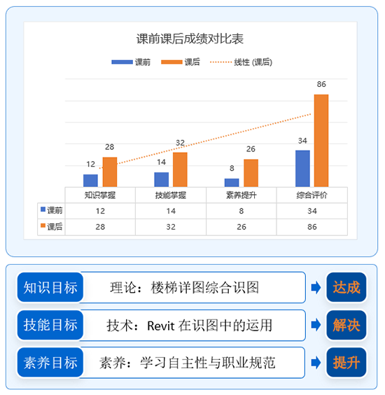 工程造價(jià)專業(yè)組則以“樓梯詳圖綜合識(shí)讀”作為教研實(shí)踐載體,經(jīng)過(guò)“三維破壁的初探、問(wèn)題診斷的磨課、虛實(shí)融教的精研、同課共生的延展”,借助BIM技術(shù)系統(tǒng)推進(jìn)《建筑識(shí)圖》課程的教學(xué)改革,讓學(xué)生在識(shí)圖能力上實(shí)現(xiàn)跨越式提升。