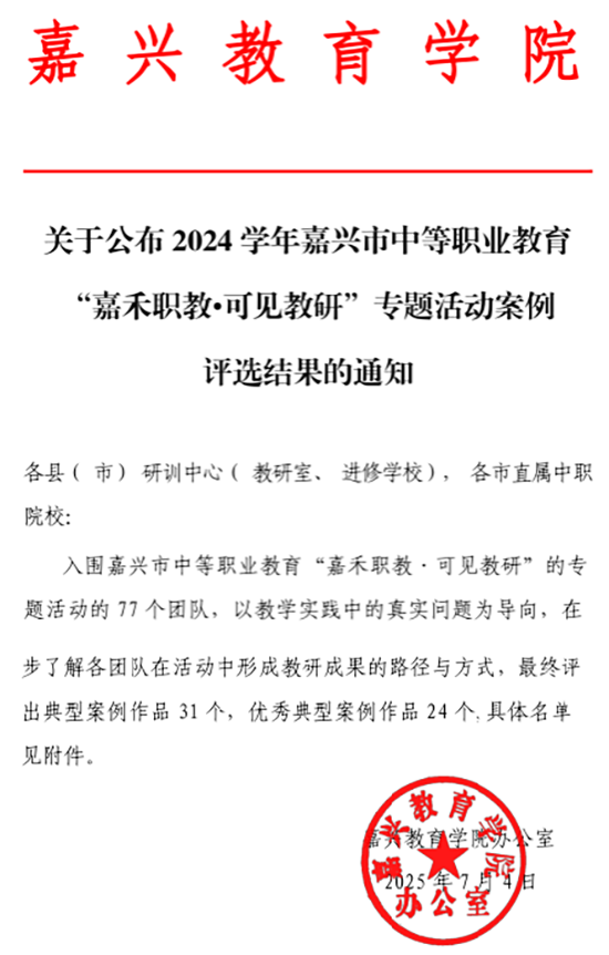 為組織落實(shí)好嘉興市中等職業(yè)教育“嘉禾職教·可見(jiàn)教研”專題活動(dòng),嘉興市建筑工業(yè)學(xué)校各教研組以構(gòu)建真實(shí)、高質(zhì)量的常態(tài)化課堂為目標(biāo),通過(guò)一系列創(chuàng)新舉措,圍繞主題教研項(xiàng)目,扎實(shí)推進(jìn)課堂建設(shè),讓教學(xué)過(guò)程清晰可見(jiàn),讓教研成果真實(shí)可感,為教師專業(yè)成長(zhǎng)和課堂質(zhì)量提升探索新路徑。