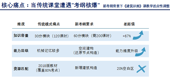 厚生建筑專業(yè)組基于新考綱的變化,從研讀新考綱內(nèi)容、對(duì)比新舊教材、分析師生困惑等角度,尋找提升學(xué)生識(shí)圖能力的發(fā)力點(diǎn);專業(yè)組教師通過(guò)一次次教學(xué)研磨,優(yōu)化教學(xué)方案、創(chuàng)新教學(xué)方法、完善資源建設(shè),實(shí)現(xiàn)了《建筑識(shí)圖》教學(xué)活動(dòng)的調(diào)整,保障教學(xué)精準(zhǔn)適配。
