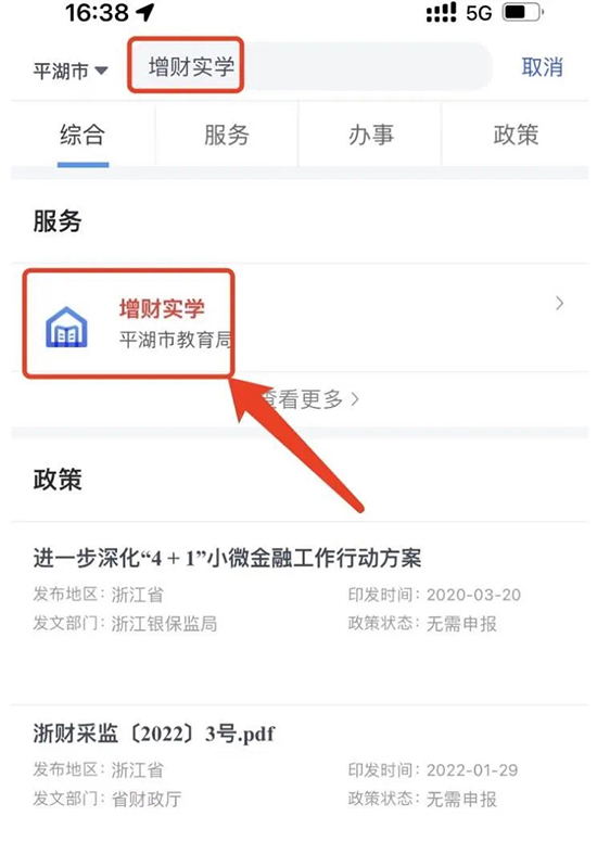 2、搜索“增財實學”,并進入