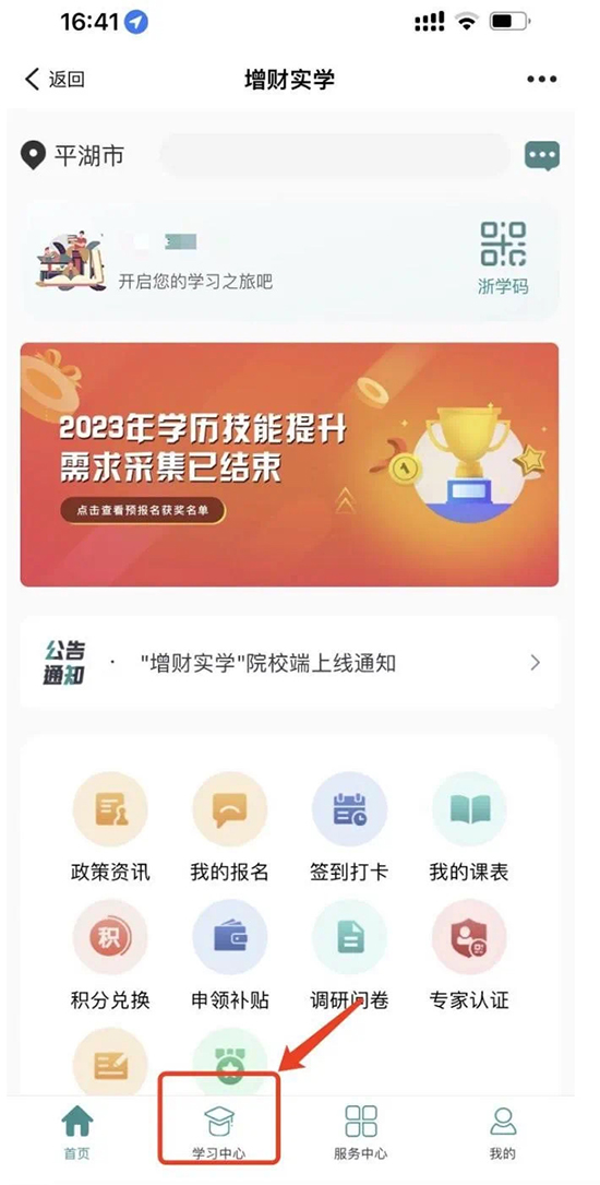 增財實學平臺報名成功的學員,請于9月8日15:00——9月11日12:00期間在班主任的組織下使用微信掃描二維碼,進入浙江省終身教育學分銀行小程序進行積分兌換、確認(如不兌換者,視為自動放棄),方法如下(具體步驟以班主任通知為準):