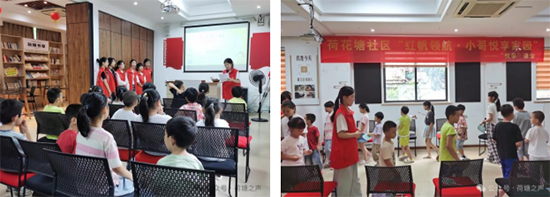 7月25日下午,荷花塘社區(qū)結(jié)合暑期假日學(xué)校“悅讀”課堂,組織轄區(qū)少年兒童及小哥子女開(kāi)展了“書(shū)香潤(rùn)童心,悅讀伴成長(zhǎng)”全民閱讀活動(dòng)。活動(dòng)中,來(lái)自學(xué)校幼兒保育專(zhuān)業(yè)的志愿者們?yōu)楹⒆觽兩鷦?dòng)地演繹了《森林王國(guó)》《小王子》等故事,志愿者們模仿著角色的語(yǔ)氣和動(dòng)作,將故事中的情節(jié)生動(dòng)地再現(xiàn)出來(lái),引得孩子們連連鼓掌。在趣味活動(dòng)環(huán)節(jié),志愿者老師結(jié)合搶椅子趣味游戲,提出一個(gè)個(gè)關(guān)于《小王子》《森林王國(guó)》等相關(guān)的問(wèn)題,孩子們紛紛舉手搶答,答對(duì)的孩子還能獲得小獎(jiǎng)品,現(xiàn)場(chǎng)歡聲笑語(yǔ)不斷。