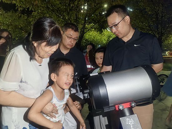 居民們或獨自觀測,或與家人分享所見,現場氛圍溫馨而浪漫。“以前只在課本里學過月相知識,今天不僅聽了詩詞里的月亮,還親手通過望遠鏡看到了月亮表面的細節,太有意義了!” 一位社區居民興奮地說。還有家長表示:“今天跟著鄒老師認識星星、了解月亮,眼里都閃著光,這樣的活動比在家看電視有價值多了。”