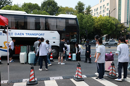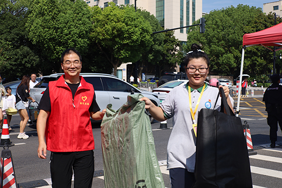 早上七時的校園,已有了忙碌的身影:校領導統籌安排,全校老師與黨員干部整裝待發,各項準備工作就緒。校門口,志愿者和老師們忙著幫新生搬運行李,不過片刻,汗水已浸濕了衣領,臉上滿是辛勞卻依舊熱情的模樣。