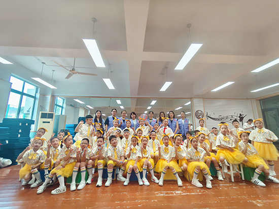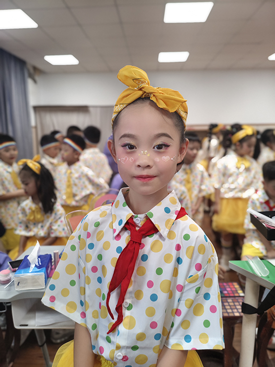 在高效協作之下,原本繁瑣的化妝工作進展得非常順利。短短兩個小時不到,四十多名學生全部妝發完成,孩子們互相打量著彼此的新形象,眼神里洋溢著驚喜與自信。老師們也連連稱贊:“這么快又這么細致,真是幫了我們大忙!”
