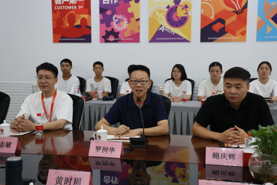 在座談交流環節,德力西集團羅潤華副總圍繞企業“客戶、政府、股東、社會”四滿意理念,闡述了德力西的戰略框架與發展理念。他特別指出,德力西在全國布局的六大生產基地均實現了較高程度的自動化生產,企業高級工占比超過60%,體現了企業對高技能人才的重視與依賴。他鼓勵同學們珍惜在校時光,努力掌握專業技能,增強未來就業競爭力。