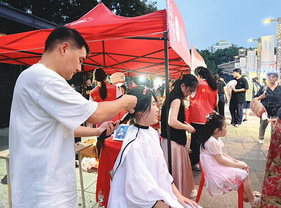 9月7日晚,由湖州市慈善總會(市慈善聯合會)、市民政局、市文明辦以及團市委聯合主辦的湖州市第十一屆“慈善嘉年華”活動在湖穎橋圓滿舉行。浙江省湖州藝術與設計學校“和煦陽光”志愿服務隊在黨員教師王津、茅旭東、張冰筠的帶領下積極參與此次活動,為市民提供剪發、編發、盤發以及非遺絨花體驗等服務。