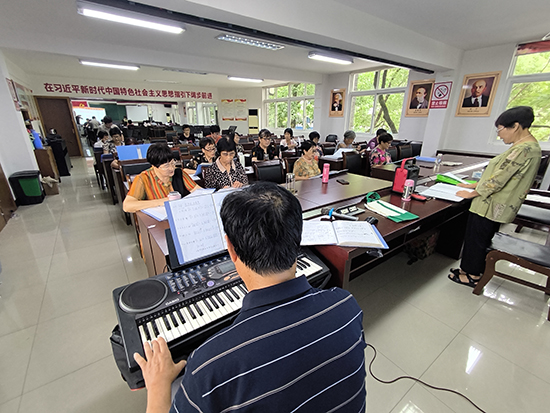 課程設(shè)計(jì)注重互動(dòng)性與趣味性。開(kāi)班儀式上,學(xué)員們分組在伴奏下合唱紅歌。教師通過(guò)分步教學(xué),幫助零基礎(chǔ)學(xué)員快速掌握節(jié)奏和音準(zhǔn),并結(jié)合紅歌歷史背景講解,深化學(xué)員對(duì)革命精神的理解。例如,在《彈起我心愛(ài)的土琵琶》合唱環(huán)節(jié),電子琴的悠揚(yáng)琴聲與學(xué)員們的鏗鏘歌聲交融,營(yíng)造出感人至深的藝術(shù)氛圍。一位72歲的學(xué)員感慨道:“通過(guò)唱紅歌讓我重溫青春歲月,心里充滿力量!”。
