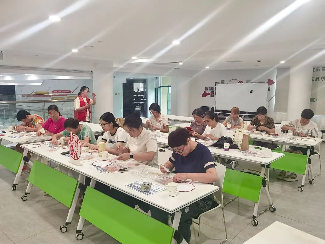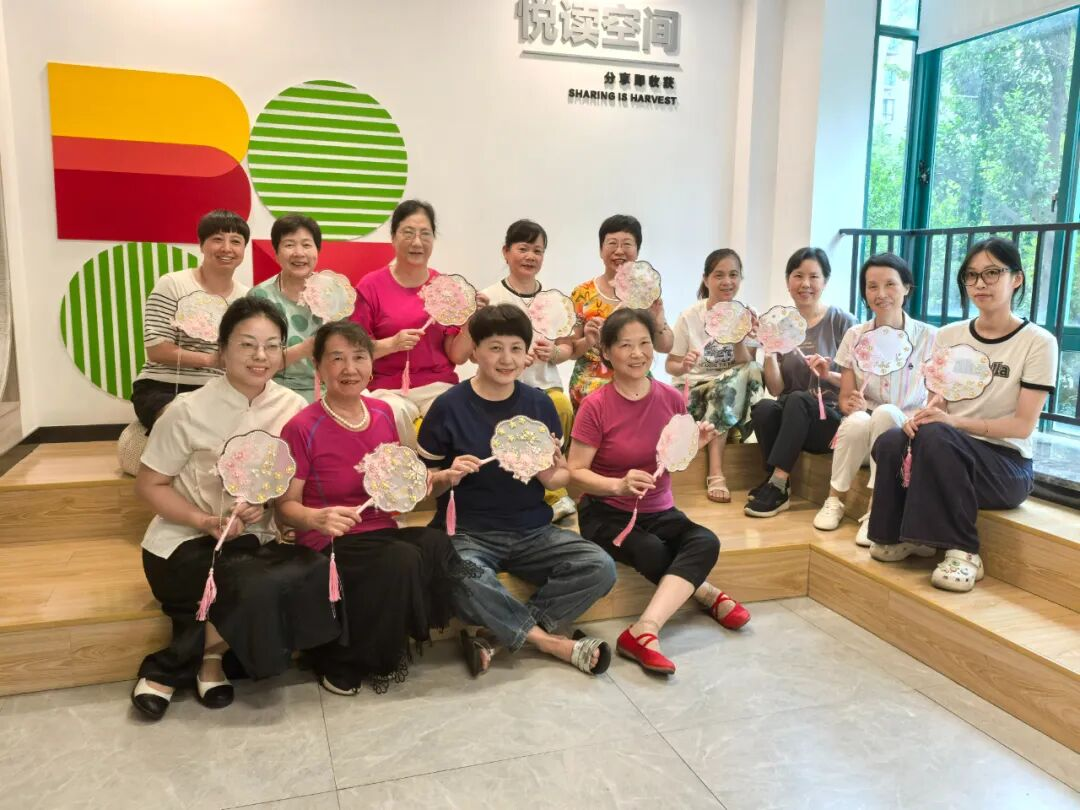 9月10日上午,杭州濱江西興街道溫馨社區老年堂開展了“非遺承古意,一扇傳風雅”的非遺團扇制作活動,本次活動吸引了十多位社區居民的熱情參與,居民們圍坐一堂,用創意與巧思制作屬于自己的團扇。