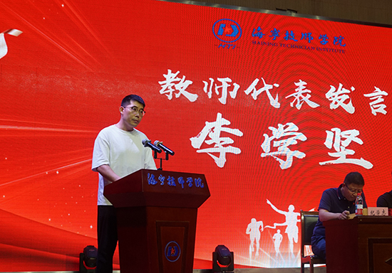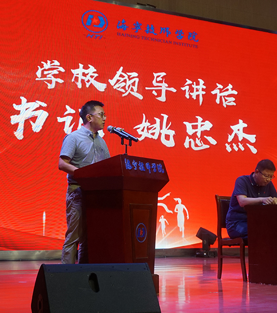 秋陽杲杲,天朗氣清。9月10日上午,海寧技師學院隆重舉行2025學年第一學期開學典禮暨第41個教師節慶祝活動。校黨委書記姚忠杰,副校長王立群、周剛、程鋒、潘曉剛,企業嘉賓——海寧紅獅寶盛航空科技股份有限公司人力行政總監紀學志出席活動。活動在校本部主會場和尖山分校分會場同步進行,由副校長程鋒主持。