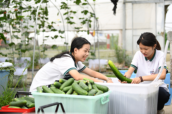 農(nóng)業(yè)班學(xué)生陳雨欣說:“以前在田園基地學(xué)技術(shù),現(xiàn)在跟著知名鄉(xiāng)村CEO劉松在田地里學(xué)運(yùn)營(yíng)、搞策劃,把自己家鄉(xiāng)建設(shè)成全國(guó)鄉(xiāng)村振興模板村,太自豪了!”