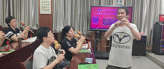 簡短而熱烈的開班儀式后,首堂課程正式開啟。本次培訓(xùn)特邀浙江省民族管弦樂學(xué)會笛子藝術(shù)研究會理事、溫州市笛簫學(xué)會副會長、溫州雅馬哈交響管樂團(tuán)長笛演奏員、瑞安市城市學(xué)院兼職教師、瑞安樂團(tuán)笛簫首席陳光煌老師授課。陳老師首先細(xì)心觀察并聆聽了每位學(xué)員的演奏,全面了解大家的演奏基礎(chǔ),隨后針對坐姿、葫蘆絲持握方法及指法進(jìn)行了逐一糾正與指導(dǎo),幫助學(xué)員夯實(shí)基礎(chǔ)、規(guī)范動作。課程最后,在陳老師的帶領(lǐng)下,學(xué)員們共同合奏了經(jīng)典曲目《月光下的鳳尾竹》,悠揚(yáng)樂聲回蕩在整個教室。