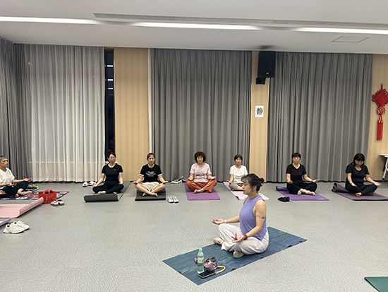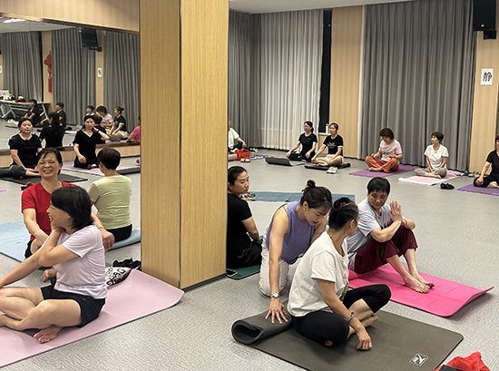 課堂上,曹老師從呼吸調(diào)節(jié)教起,借著柔和的燈光,逐一對(duì)學(xué)員的動(dòng)作進(jìn)行細(xì)致糾正:“腰背貼緊瑜伽墊,不要聳肩”“手臂向上延展時(shí),感受腋下的拉伸”。耐心的指導(dǎo)讓初次接觸瑜伽的居民快速找到狀態(tài),也讓有基礎(chǔ)的學(xué)員更精準(zhǔn)地掌握發(fā)力點(diǎn)。居民小章是一名上班族,她笑著說(shuō):“白天對(duì)著電腦久坐,晚上來(lái)練瑜伽特別舒服,比在家刷手機(jī)有意義多了!”居民李阿姨則表示,晚上練完瑜伽睡眠都變好了,打算每周都來(lái)。