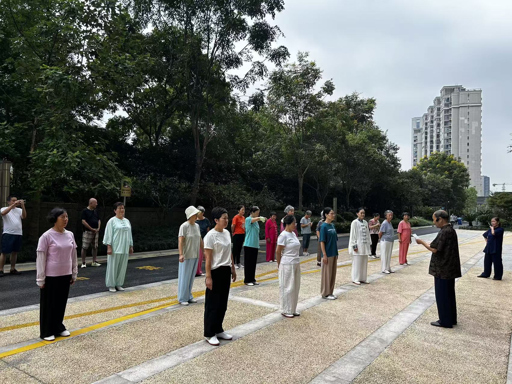 9 月 15 日上午,在聞濤誠苑西區廣場,一場別開生面的文化盛事拉開帷幕,濱江社區學院長河分院錢潮望濤社區教學點秋季太極拳培訓班正式開課。秋高氣爽,微風輕拂,廣場上洋溢著活力與期待,30 多位太極拳愛好者身著寬松舒適的運動服,滿懷熱忱地相聚于此,共同開啟一段太極文化的探索之旅。