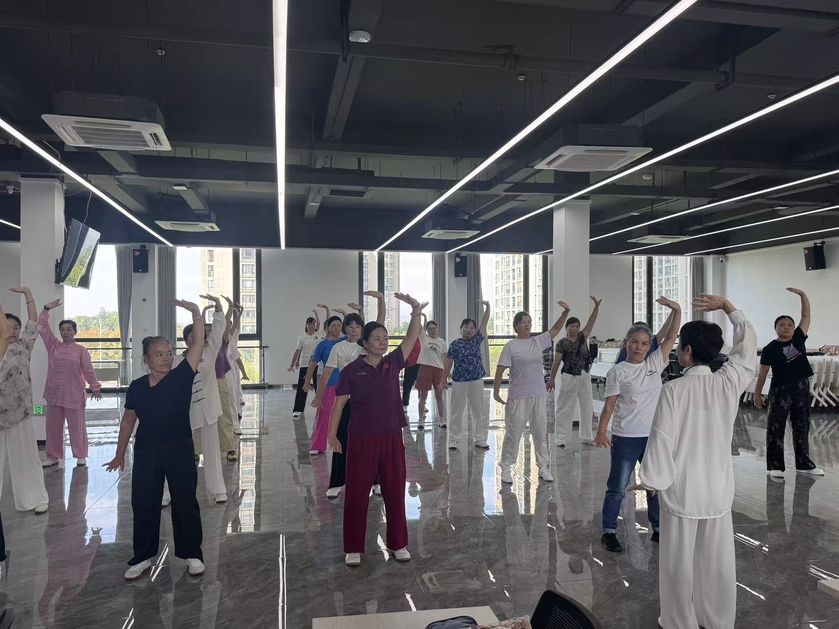 9月12日清晨,杭州市濱江區(qū)社區(qū)學院浦沿分院浦聯(lián)社區(qū)教學點已是熱鬧非凡。早8時半整,望水華庭小區(qū)三樓會議室陸陸續(xù)續(xù)已有居民到場,備受期待的浦聯(lián)社區(qū)太極班正式開啟新一期課程。學員們神情專注,學習熱情格外高漲。