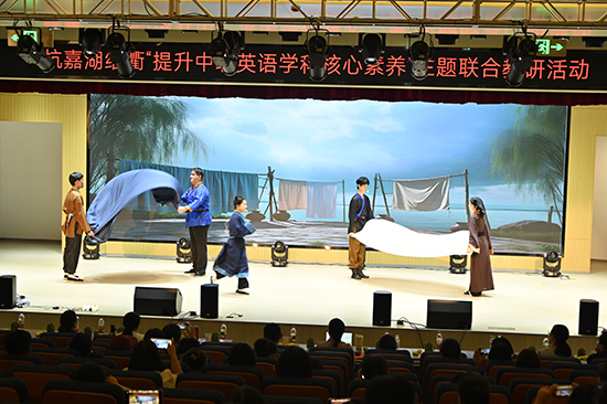 戲劇賦能英語課堂,實現學生語言、技能、文化意識和思維品質等多維目標協同發展,持續進行9年的杭州市中職英語教育戲劇教改探索已經結出累累碩果,活動過程中,喬司職高學生表演了課本劇《徐霞客》,臨平職高教師表演了戲劇《詹天佑》,成為活動的一個亮點,學生與教師同臺,用戲劇激活語言,用文化點亮自信,英語學習“活”了起來,呈現了中職英語學習產出的多種可能性,展現了師生通過教育戲劇所呈現出來的良好綜合素養。