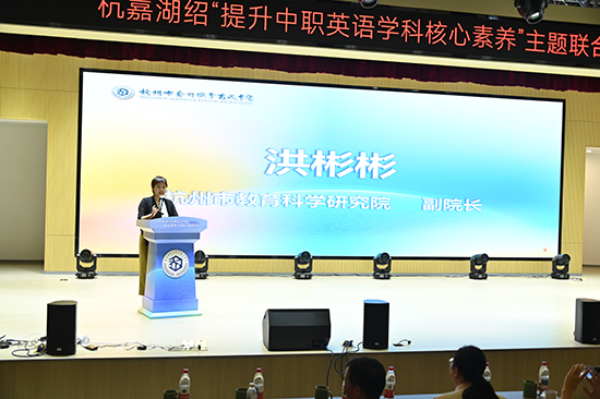 杭州市教育科學研究院副院長洪彬彬首先致辭,她指出,在“人工智能+”與“職普融通”的新背景下,教師要持續學習,吸取國內外先進教學理念,借鑒各級各類教學同行的有效教學模式,特別是要深度研究實施教育戲劇,高效促成英語學科核心素養落地。
