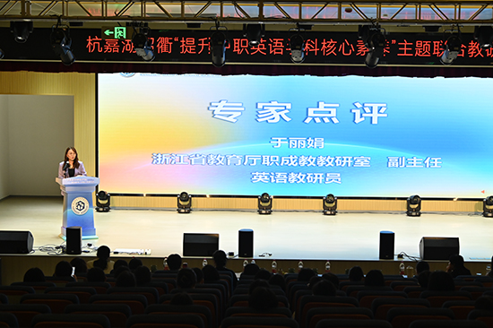 浙江省教育廳職成教教研室副主任、英語教研員于麗娟,杭嘉湖紹教研部門相關負責人以及中職英語教研員,高等教育出版社外語出版事業部副主任畢永軍、首席編輯黃娜等領導嘉賓蒞臨現場指導。活動安排了專家講座、公開課、說課展示、師生英語戲劇表演和無生課堂比賽,內容豐富,精彩紛呈。