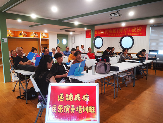活動現場,遞鋪分院特邀的民樂教師先從曲目節奏、樂器配合等基礎要點入手,逐句拆解演奏技巧,再通過分組練習、整體合排的方式,幫助學員攻克演奏難點。短短半天時間,學員們便熟練掌握了《茉莉花》的合奏技巧,悠揚的旋律在文體中心內反復回蕩,引得不少路過的居民駐足聆聽。