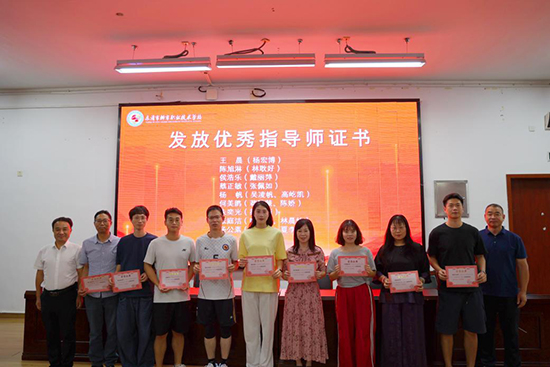 分享結(jié)束后,蔡正敏副校長(zhǎng)為三位出師教師發(fā)放出師證書(shū),這既是對(duì)他們成長(zhǎng)成果的認(rèn)可,也是對(duì)他們未來(lái)發(fā)展的鼓勵(lì)。隨后,黃時(shí)周副校長(zhǎng)與陳阿友副校長(zhǎng)共同為優(yōu)秀指導(dǎo)師頒發(fā)榮譽(yù),以表彰他們?cè)?ldquo;傳幫帶”工作中所作出的卓越貢獻(xiàn),從而進(jìn)一步激發(fā)了全體教師參與師徒結(jié)對(duì)活動(dòng)的熱情。