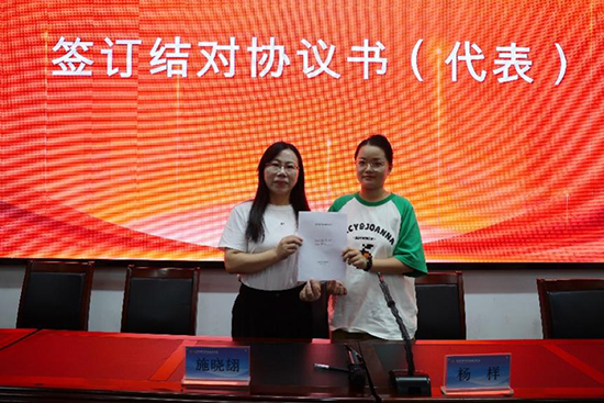 在全場(chǎng)師生的見(jiàn)證下,大會(huì)進(jìn)入核心環(huán)節(jié) —— 師徒結(jié)對(duì)協(xié)議書(shū)簽訂。施曉翃老師與楊樣老師作為師徒代表,鄭重走上臺(tái),共同簽訂結(jié)對(duì)協(xié)議書(shū)。落筆的瞬間,不僅是一份承諾的達(dá)成,更是一份責(zé)任的傳遞。師傅們將以嚴(yán)謹(jǐn)?shù)膽B(tài)度、豐富的經(jīng)驗(yàn)指導(dǎo)徒弟,徒弟們也將以飽滿的熱情、積極的態(tài)度虛心學(xué)習(xí),師徒攜手共同進(jìn)步的畫(huà)面,成為現(xiàn)場(chǎng)最溫馨的風(fēng)景。