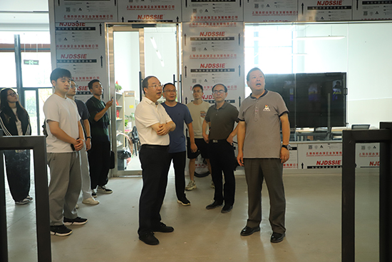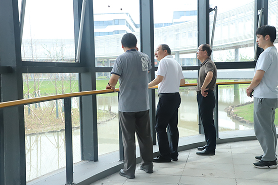 在張武劍和王志勇的帶領下,胡會長一行參觀了校園,了解了學校的發展歷史,并實地考察了交通運維與智能制造實訓室的建設進度與設備投入情況,對新校區的新面貌贊嘆不已。