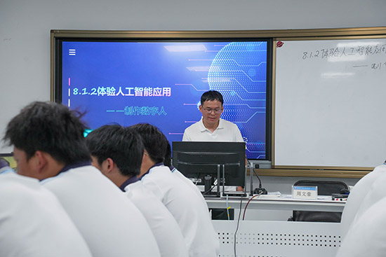 活動以 “實踐展示 + 深度研討 + 工作部署” 為主線,內容豐富且針對性強。公開課環節以 “同課異構” 形式拉開帷幕 —— 溫州市第二職業中等專業學校的周文豪老師與溫州市職業中等專業學校的鄭方方老師,圍繞同一教學主題“體驗人工智能應用”同時開課,通過差異化的教學設計與教學方法,展現了對同一課程內容的多元解讀與實踐路徑。兩位老師風格各異卻同樣精彩的課堂,為現場教師提供了 “同一課題、不同教法” 的生動范例。