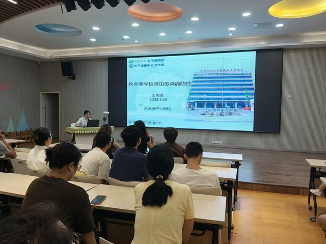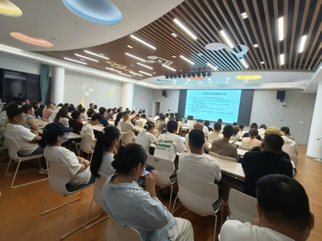 講座中,王培園醫生結合學校人群聚集的特點,圍繞流感、水痘、麻疹、腮腺炎、手足口病等秋冬季高發傳染病,詳細講解了各類疾病的傳播途徑、典型癥狀與鑒別方法。同時,針對家長關心的防護措施,她重點強調了家庭與學校協同防控的重要性,建議家長做好孩子日常健康監測,配合學校落實晨檢、缺課原因上報,同時注重家庭環境通風消毒、培養孩子良好衛生習慣,并提示及時接種相關疫苗。