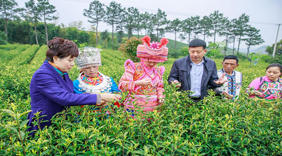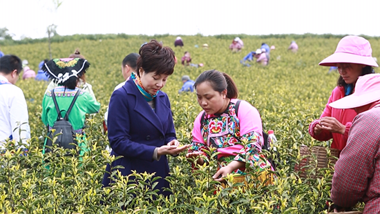 “我們能富起來,是黨和政府幫扶的結(jié)果。替國家分憂,是我們的責任。”富起來的宋昌美,念念不忘黨和政府的恩德。2018年4月,溪龍鄉(xiāng)黃杜村書記倡議大家給習總書記寫信,匯報村里種植白茶致富情況,并提出捐贈1500萬株“白葉一號”茶苗幫助西部貧困地區(qū)群眾脫貧,她第一個舉手贊成,立馬認領(lǐng)捐贈“白葉一號”扶貧苗80萬株。為解決茶苗“往哪兒種”的問題,她與國務(wù)院扶貧辦一道先后四次赴云貴川湘等地區(qū)考察選址,七天內(nèi)坐了5趟飛機,4趟動車,近50個小時汽車。她承諾要種活、種好、種出成效。這些年里,宋昌美共往返三省五縣“白葉一號”種植基地近20趟,手把手教農(nóng)戶基地管理、茶葉采摘、炒制加工、市場銷售等全過程技術(shù)經(jīng)驗。在像她這樣“土專家”的不懈幫扶下,受捐地已推廣種植“白葉一號”茶園5萬余畝,茶苗存活率接近90%,2022年三省五縣受捐各村共計采摘青葉6.5萬余斤,銷售收入770萬元,成功帶動2064戶貧困群眾脫貧增收。