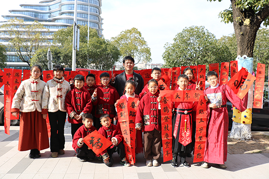惠民服務:自2021年起連續五年自費購置筆墨紙硯,書寫春聯贈予市民累;送出5000余幅,惠及衢州30余個社區。