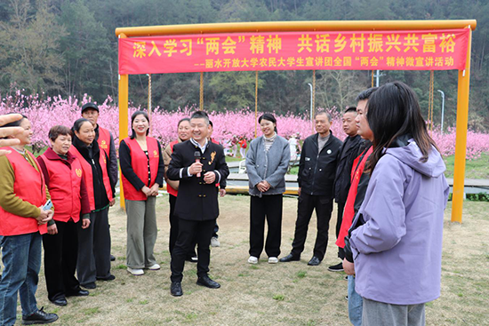 麗水開大農民大學生宣講團是全國開放大學系統首個農民大學生新思想宣講團,自成立以來,本著“講好鄉(xiāng)村振興故事,傳播理論好聲音”的宗旨,深入農村文化禮堂、田間地頭、百姓家中,宣傳十九大、二十大精神。宣講團“聚是一團火,散是滿天星”,既有組團宣講,又有分散宣講。并充分發(fā)揮開大的系統辦學優(yōu)勢,不斷創(chuàng)新宣講形式與載體。好多宣講員已成為宣講名師,受邀到全國各地宣講70多場,學生樓干強還走上了清華大學講臺與第17屆中國東盟社會發(fā)展與減貧論壇。