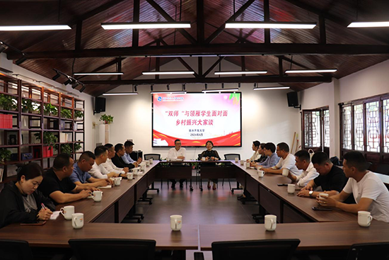 (三)雙師聯動,突出教師導師相協同。一方面,成立“興村治社名師”導師團隊,學生自主選擇導師結對,并跟隨導師為期1周的進村掛職全程跟班學習,重點學習導師鄉(xiāng)村治理經驗。學校邀請“興村治社名師”來學校開展沙龍、專題講座等活動,讓鄉(xiāng)村振興實踐經驗走進課堂。另一方面,學校教學名師工作室導師擔任班主任跟進服務,及時解答疑難問題,與“興村治社名師”導師團架起“雙師聯動”的協同機制,有效地實現優(yōu)勢互補,打造了“共研、共建、共享、共成”的“領雁工程”教育共同體,形成了同向同行、協同育人的教育一體化格局,有效增強“頭雁”的實踐能力。