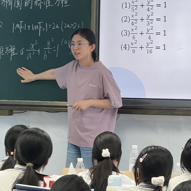 8時(shí)50分,衢州旅游學(xué)校的程肖瑜老師在8-405教室率先開課,結(jié)合本次研討主題,她以中國人造衛(wèi)星事業(yè)引入,以科研人員精益求精,越挫越勇的工匠精神進(jìn)行思政教育,課堂中,她讓工美學(xué)生利用畫板,繩子,釘子動手畫橢圓,在畫的過程中感受橢圓的生成過程,接著借由圓的幾何性質(zhì)和方程的推導(dǎo)過程的學(xué)習(xí)經(jīng)驗(yàn),類比至橢圓的幾何性質(zhì)與方程推導(dǎo)過程,整個(gè)教學(xué)巧妙結(jié)合,精準(zhǔn)的教學(xué)定位、清晰的邏輯架構(gòu),點(diǎn)燃了學(xué)生們的學(xué)習(xí)熱情。隨后,衢州理工學(xué)校的陳雪蕾老師在8-404教室接力授課,針對高二7班學(xué)生特點(diǎn)設(shè)計(jì)互動環(huán)節(jié),通過具象化演示與分層提問,讓抽象的數(shù)學(xué)知識變得可感可及。