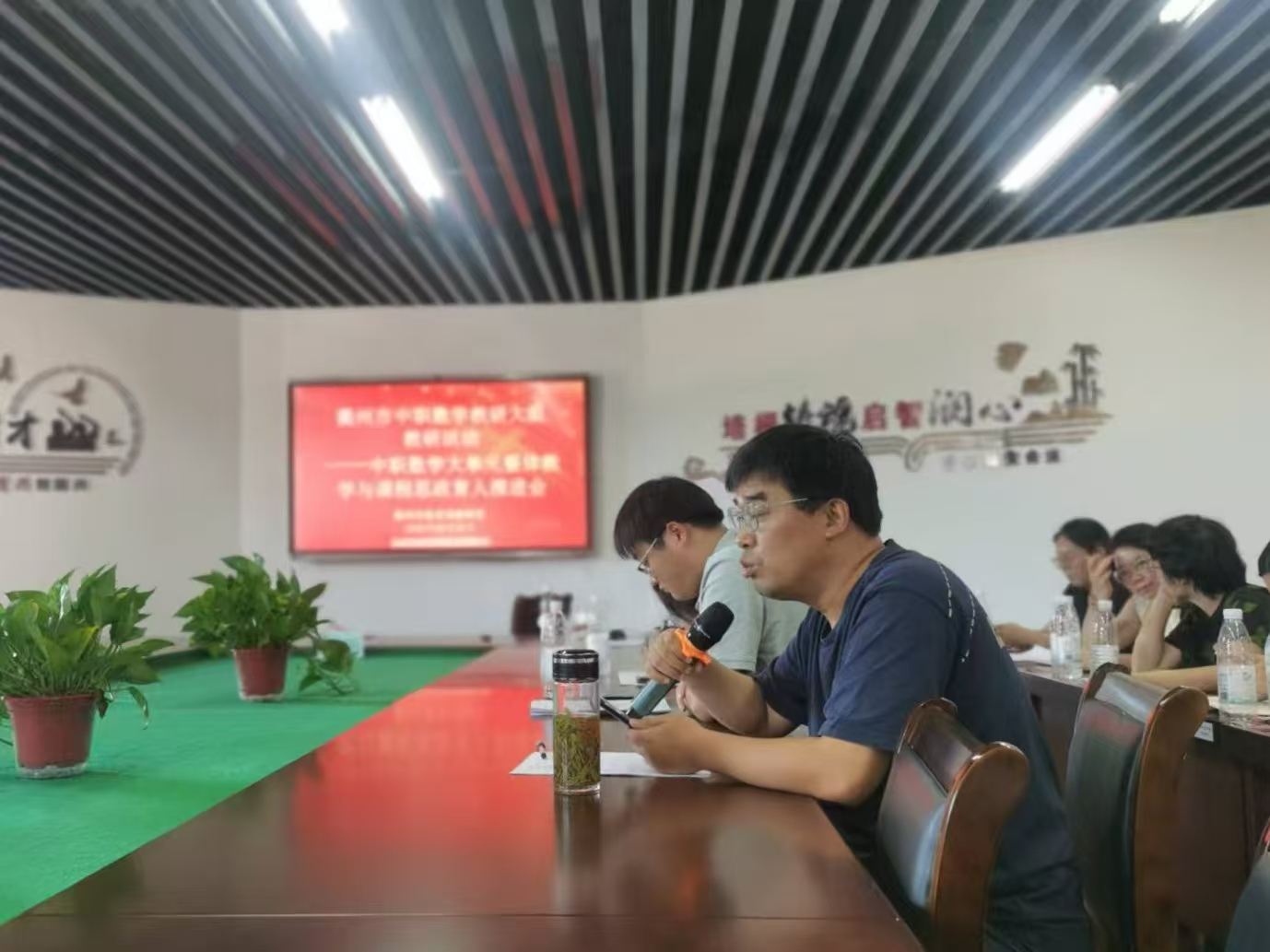 午后的研討環(huán)節(jié)聚焦實(shí)踐落地,由浙江省衢州數(shù)字工業(yè)化學(xué)校正高級徐春紅老師統(tǒng)籌主持。首先徐老師對全市高一上學(xué)期期末考試成績進(jìn)行通報(bào),結(jié)合學(xué)情數(shù)據(jù)精準(zhǔn)分析教學(xué)現(xiàn)狀,明確了下一階段的教學(xué)重心。其次,由衢州第二中專王建軍老師作課程思政學(xué)習(xí)要點(diǎn)匯編的集體備課與教學(xué)研討,并由衢州理工學(xué)校的正高級劉小康老師作總結(jié)性發(fā)言:強(qiáng)調(diào)數(shù)學(xué)老師在組織教學(xué)過程中要注意區(qū)域文化產(chǎn)業(yè)特色,遵循學(xué)科特點(diǎn),探索衢州本地?cái)?shù)學(xué)文化特色。接著由各校數(shù)學(xué)教研組長依次分享了各校在數(shù)學(xué)教學(xué)提質(zhì)、大單元整體教學(xué)、課程思政育人等方面的實(shí)踐經(jīng)驗(yàn),為與會者提供了可借鑒的教學(xué)思路與實(shí)施路徑。