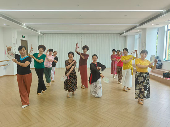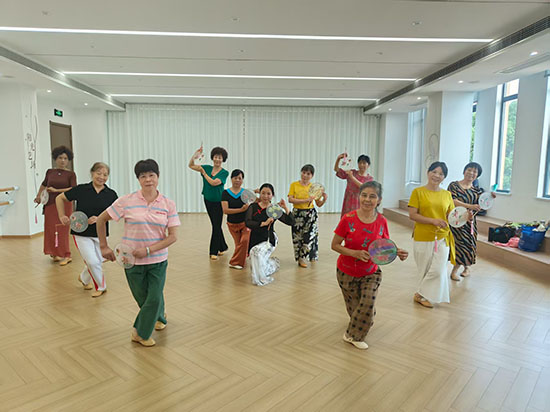 在黨群服務中心舞蹈教室里,老師正帶領學員們練習基礎身段。伴隨著悠揚的古典樂曲,老人們抬手、轉身、屈膝,動作雖不似年輕人那般靈動,卻透著一股認真與執著。“以前總覺得跳舞是年輕人的事,沒想到自己也能跟上節奏,跳完渾身都舒服!”