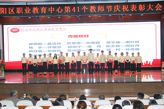 現(xiàn)場,通過一段短片回顧了八位30年教齡老師們的動(dòng)人風(fēng)采。隨后,劉忠明書記和夏峰巍校長為他們送上鮮花。全場以最熱烈的掌聲,向這些默默奉獻(xiàn)的教育者表達(dá)了由衷的感謝。大會(huì)歡迎新老師加入職校中心的大家庭并進(jìn)行的“師徒結(jié)對(duì)儀式”做到了新人入履,薪火相傳。同時(shí)對(duì)過去一年在學(xué)校教學(xué)、管理、后勤等各項(xiàng)工作做出顯著成績的先進(jìn)個(gè)人和集體進(jìn)行表彰,進(jìn)一步弘揚(yáng)了職教中心教師的育人風(fēng)采,增強(qiáng)廣大教師的光榮感,責(zé)任感和使命感。