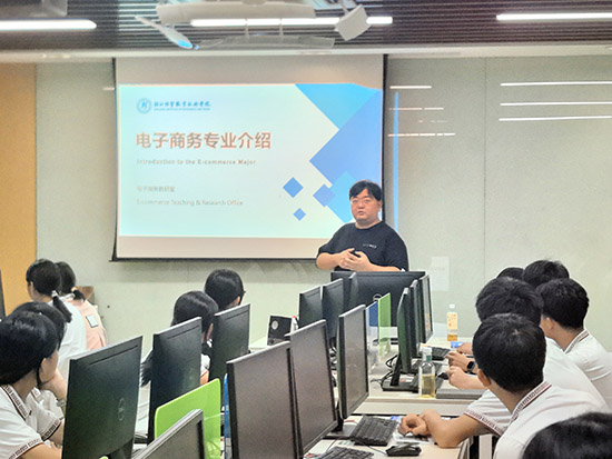 浙江經貿職業技術學院電商專業傅老師、夏老師、馬老師、蔣老師,對同學們的到來表示熱烈歡迎。隨后,傅老師圍繞電商專業展開詳細講解:該專業是國家高水平專業群核心專業,同時擁有省級重點專業、省級示范專業、省級特色專業稱號,亦是省內唯一連續兩屆入選 “十二五”“十三五” 優勢專業的電商類專業。講解中,傅老師從專業發展歷程切入,依次介紹學院電商專業的師生規模、人才培養質量指標,重點展示校內外實訓基地建設成果,以及專業在課程設置、行業對接方面的獨特優勢;同時提及中外合作項目,說明其為學生搭建的多元發展平臺,讓同學們對電商專業的未來前景有了更清晰的認知。