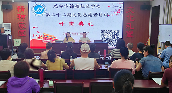 金秋十月,丹桂飄香。10月14日晚,瑞安市錦湖社區學校文化禮堂內燈火通明,第二十二期文化志愿者聲樂班開班典禮在此舉行,40余名熱愛聲樂的文化志愿者齊聚一堂,共同開啟新一輪的音樂學習之旅。
