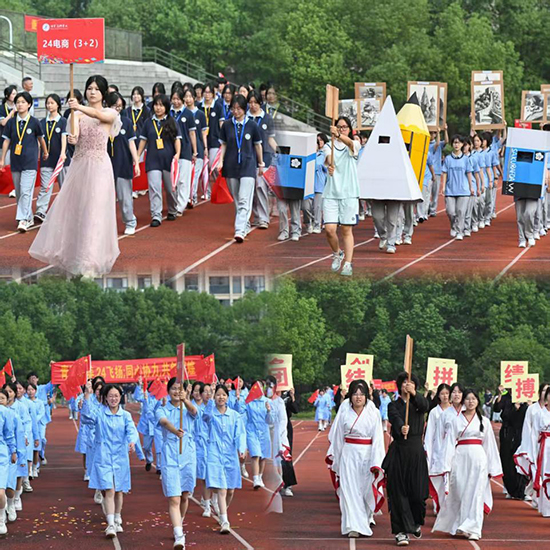 在莊嚴(yán)的升國旗儀式后,運(yùn)動會的序幕順利拉開。各班的入場式表演,同學(xué)們集思廣益,將專業(yè)特色與藝術(shù)表演完美融合。有的班級身著統(tǒng)一的職業(yè)裝,展示著未來工匠的風(fēng)采;有的班級帶來了活力四射的健美操表演,舞動著青春的節(jié)拍;更有班級以“為祖國國慶獻(xiàn)禮”為主題,通過精心編排的隊(duì)列和手勢舞,表達(dá)了對祖國的深切熱愛與祝福。每一個方陣都是一道獨(dú)特的風(fēng)景線,每一次表演都是一次才華的綻放,贏得了看臺上師生的陣陣掌聲。