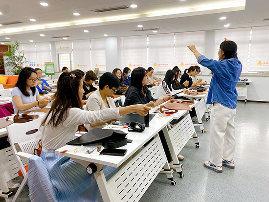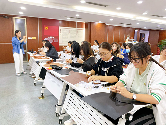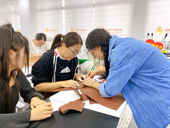 舒緩的輕音樂在現場流淌,大家圍坐在一起,時而專注地穿針引線,時而互相交流制作技巧,偶爾為彼此的創意設計點贊。平時在辦公室對著電腦久坐,這次親手做皮包,不僅鍛煉了動手能力,更感覺身心都放松下來了。