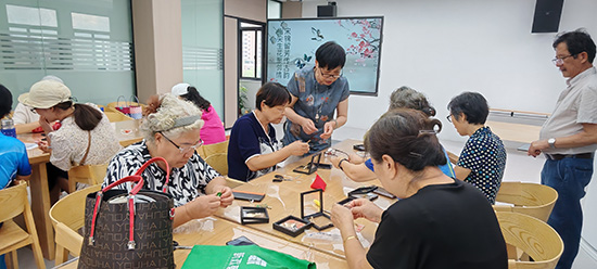 “我選的是葫蘆款式,寓意‘福祿’,希望把好運(yùn)帶回家。”一位正在認(rèn)真粘貼的阿姨笑著展示她的半成品,“平時(shí)很少做針線活,和大家一起邊聊邊做,感覺特別放松,好像回到了年輕時(shí)候。”