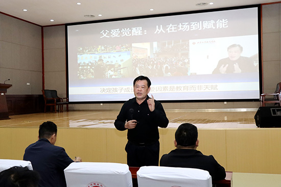 浙江省家庭教育講師團成員、省特級教師、“父范學堂”創始人周炳炎受邀作開班“第一課”。周老師以“父愛覺醒:從在場到賦能”為題,理論聯系實際,簡述了當前青少年成長中的不良趨勢,詳盡講解了父親在家庭教育中有著不可替代的作用。周老師強調,父親學員們要有質量地陪伴孩子,做好孩子的榜樣,堅持正面鼓勵引導,尊重孩子的夢想和興趣,爭當一個合格的“好爸爸”。