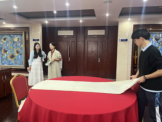 交流結束后,兩人還實地觀摩了鋪床操作區和餐桌擺臺技能訓練現場。
