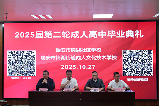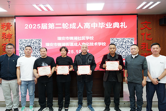 據悉,近年來,瑞安市錦湖社區學校成人高中學歷提升項目已有1000多人順利畢業,今年已有163名學員獲得成人高中畢業證書。學校將根據上級部署,持續推進常年招生,為更多有志于提升的社會人士創造學習機會。