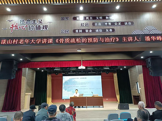 為提高社區老年居民對骨質疏松癥的防治意識,10月27日上午,慈溪市宗漢社區教育中心特邀宗漢醫院潘華峰醫生,走進漾山村老年大學,舉辦了一場以“骨質疏松的預防與治療”為主題的健康知識講座,現場吸引了216名老年朋友踴躍參與。