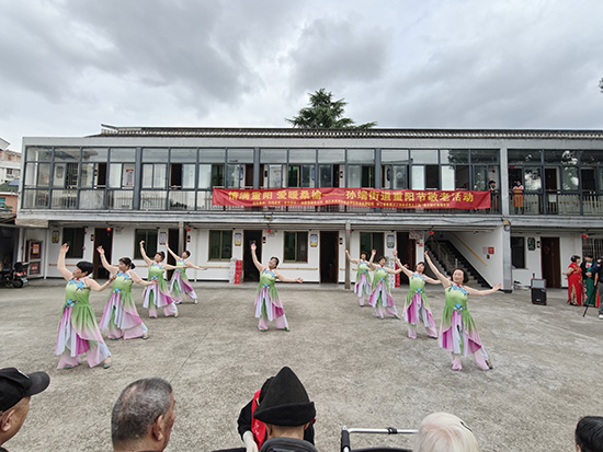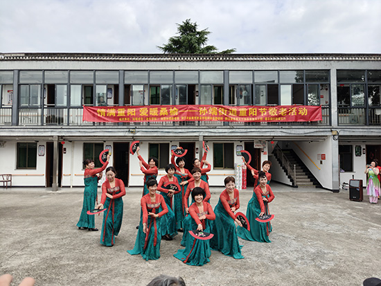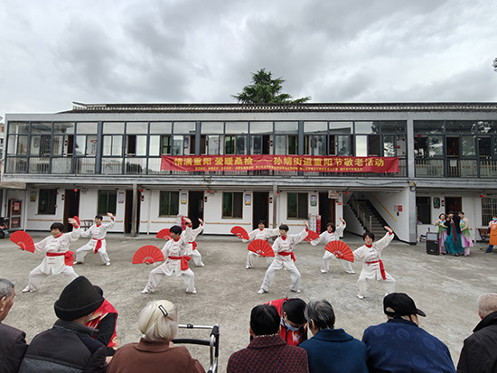 緊接著,孫端老年學校的學員們還為老人們獻上了太極《功夫扇》、越劇《何文秀選段》、排舞《為你祈禱》、表演《小城畫師》等精彩的節目,她們積極有為、樂觀向上的精神風貌贏得了在場老年人的陣陣掌聲。