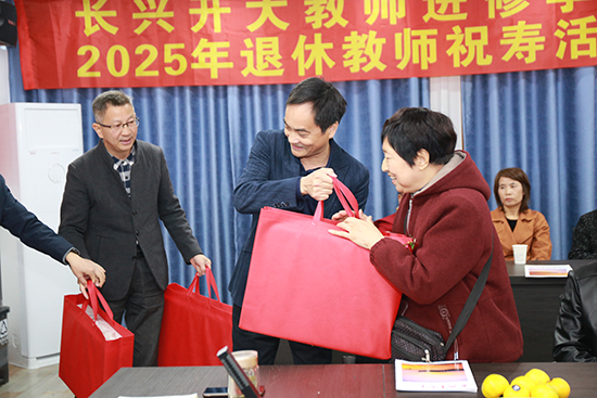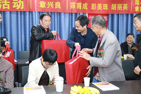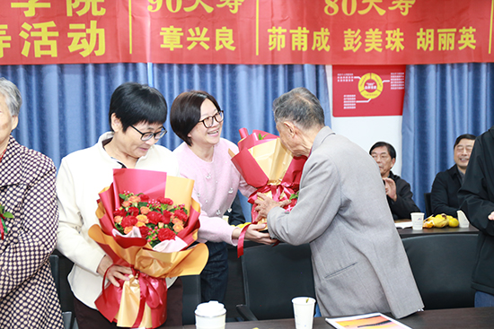 學院黨總支書記章小杰、副書記孫甫永和退教協會會長徐金昌為壽星們送上鮮花和紀念品。