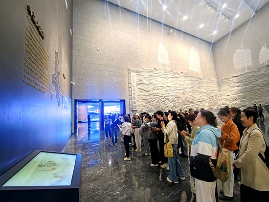 浙東運河博物館內(nèi),老年學(xué)員們在講解員的帶領(lǐng)下,沿“運河緣起—水運興盛—文化交融” 的展陳脈絡(luò)緩步前行。講解間隙,老年學(xué)員們不時提問交流,探討運河對浙東地區(qū)民俗、商貿(mào)、城市發(fā)展的深遠(yuǎn)影響。在四十分鐘的研學(xué)時光里,追溯運河歷史脈絡(luò),從千年水運文化中感悟時光沉淀的生命力量。