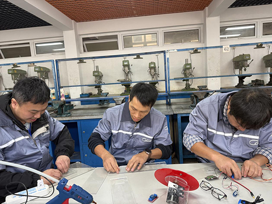 鐘亮、沈張松、毛成萍老師合作設計《汽車冷卻系統可視化自動循環演示教具》,通過巧妙的可視化設計,將抽象的冷卻系統工作原理轉化為清晰可見的動態過程,有效破解了傳統教學中的講解難題。