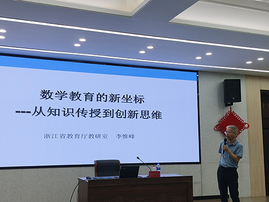 培訓期間,浙江省教育廳教研室初中數(shù)學教研員李惟峰作主題為《數(shù)學教育的新坐標——從知識傳授到創(chuàng)新思維》的專題講座,李老師從創(chuàng)新思維培養(yǎng)的背景、創(chuàng)新思維培養(yǎng)的關鍵、創(chuàng)新思維培養(yǎng)的建議三個維度深刻闡述了創(chuàng)新思維培養(yǎng)的重要性、內容和路徑,為參訓教師從“知識傳授”走向“素養(yǎng)教學”的轉變提供了理念上的更新和實踐上的引領。寧波市教育局教研室初中數(shù)學教研員楊一麗作主題為《理解課標 解構教材 賦能教學》的專題講座,講座從課標主要的突破、教材修訂的主要方面、教學的思考等方面展開,同時結合課例分析讓參訓教師對課堂上如何讓學生的思維得到生長與升華有了直觀的感知,為研題提供方向和框架。湖州市教育科學研究中心初中數(shù)學教研員沈瑩琪作主題為《讓孩子學會學習:新課標下初中數(shù)學深度教學的設計與思考》的專題講座,沈老師通過幾個案例的分析讓參訓教師明白如何實現(xiàn)評價與教學的一致性并在教學中怎樣實現(xiàn)高路遷移和深度教學,同時還強調數(shù)學教師一定要學會學習,要努力把我們的數(shù)學課上得更深一點、更有味道點,讓孩子們學起來更輕松更愉快。